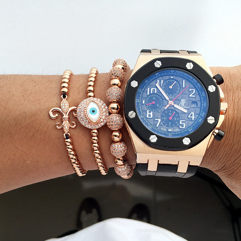 Mcllroy brand Men bracelet Pave Setting Black CZ Shield Connector with 4mm Round bead Braiding men macrame charm bracelet Rock