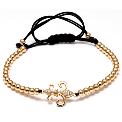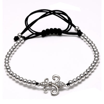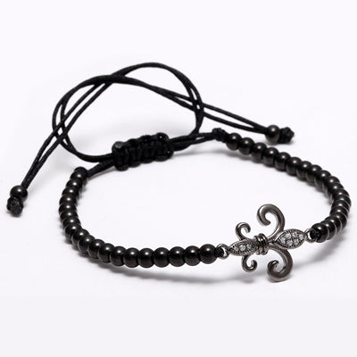Mcllroy brand Men bracelet Pave Setting Black CZ Shield Connector with 4mm Round bead Braiding men macrame charm bracelet Rock - 555 Famous